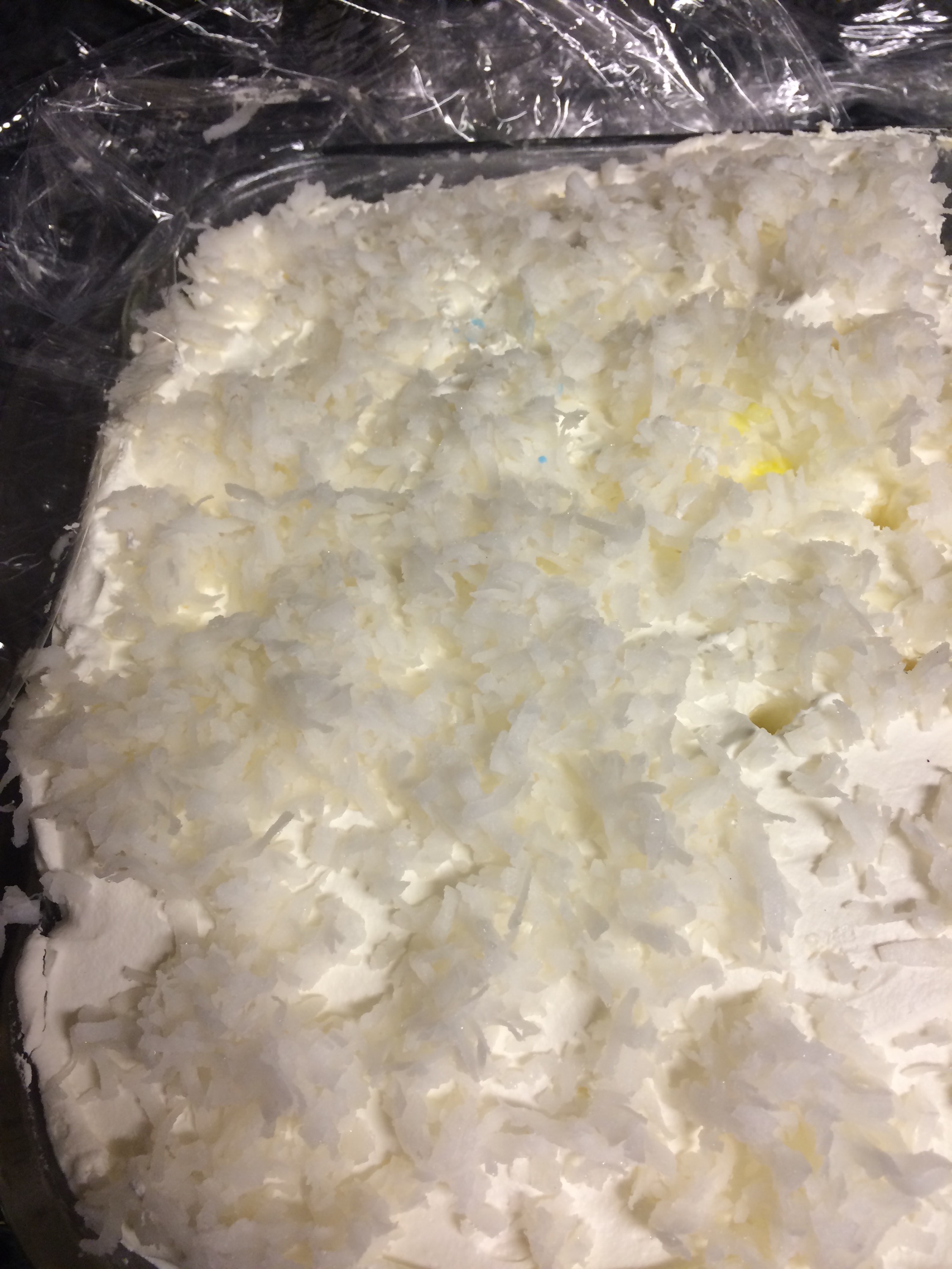 4. Let cook completely. Too with cool whip and sprinkle with additional coconut. Place in the fridge to chill.