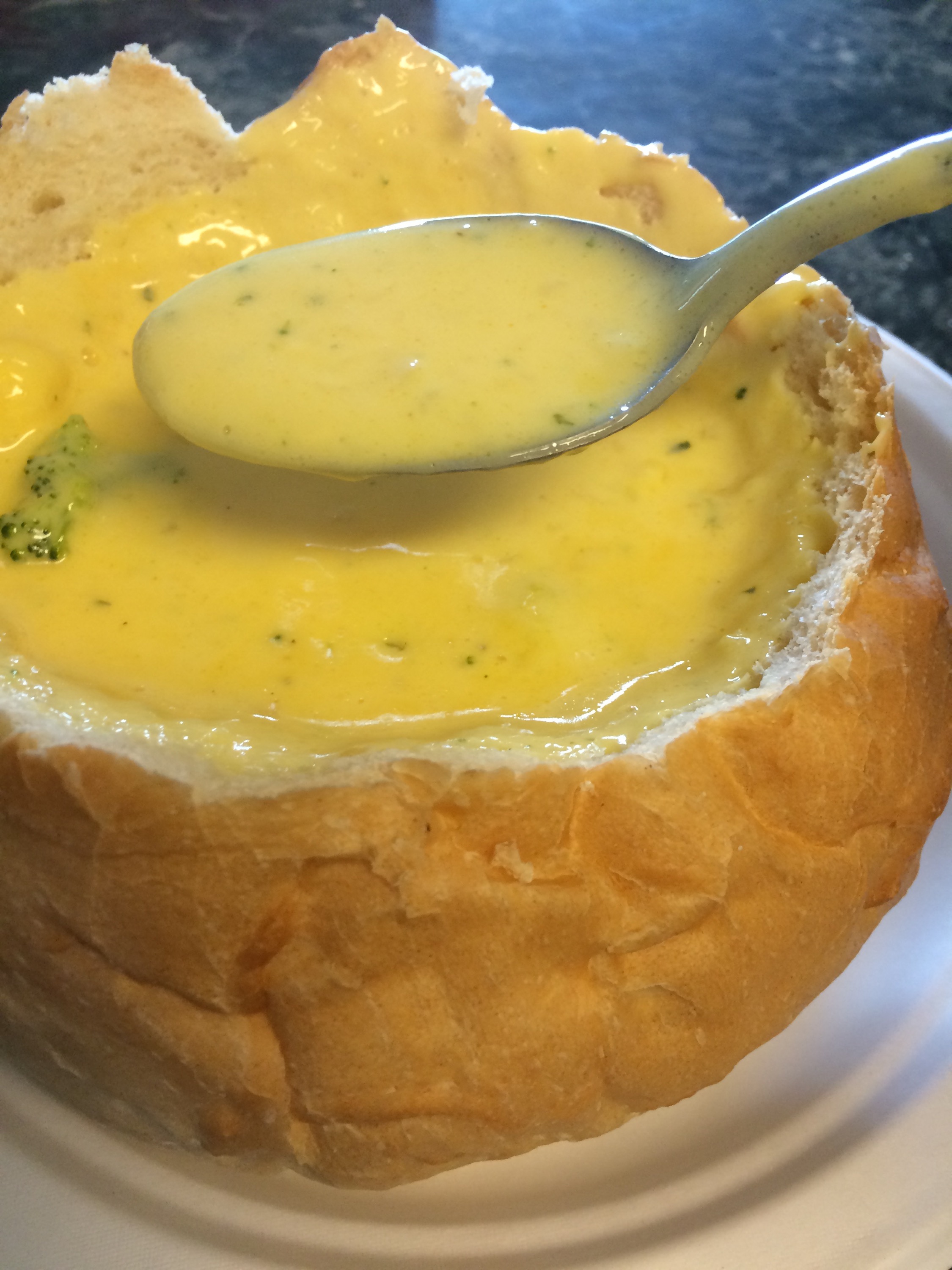 I woke up the other day with a craving for this soup inside a delicious bread bowl. Luckily for me the local grocery store carries fresh made bread bowls, and I found a recipe for the soup. Within minutes, yes minutes I had mouth watering soup steaming inside a delicious bread bowl.