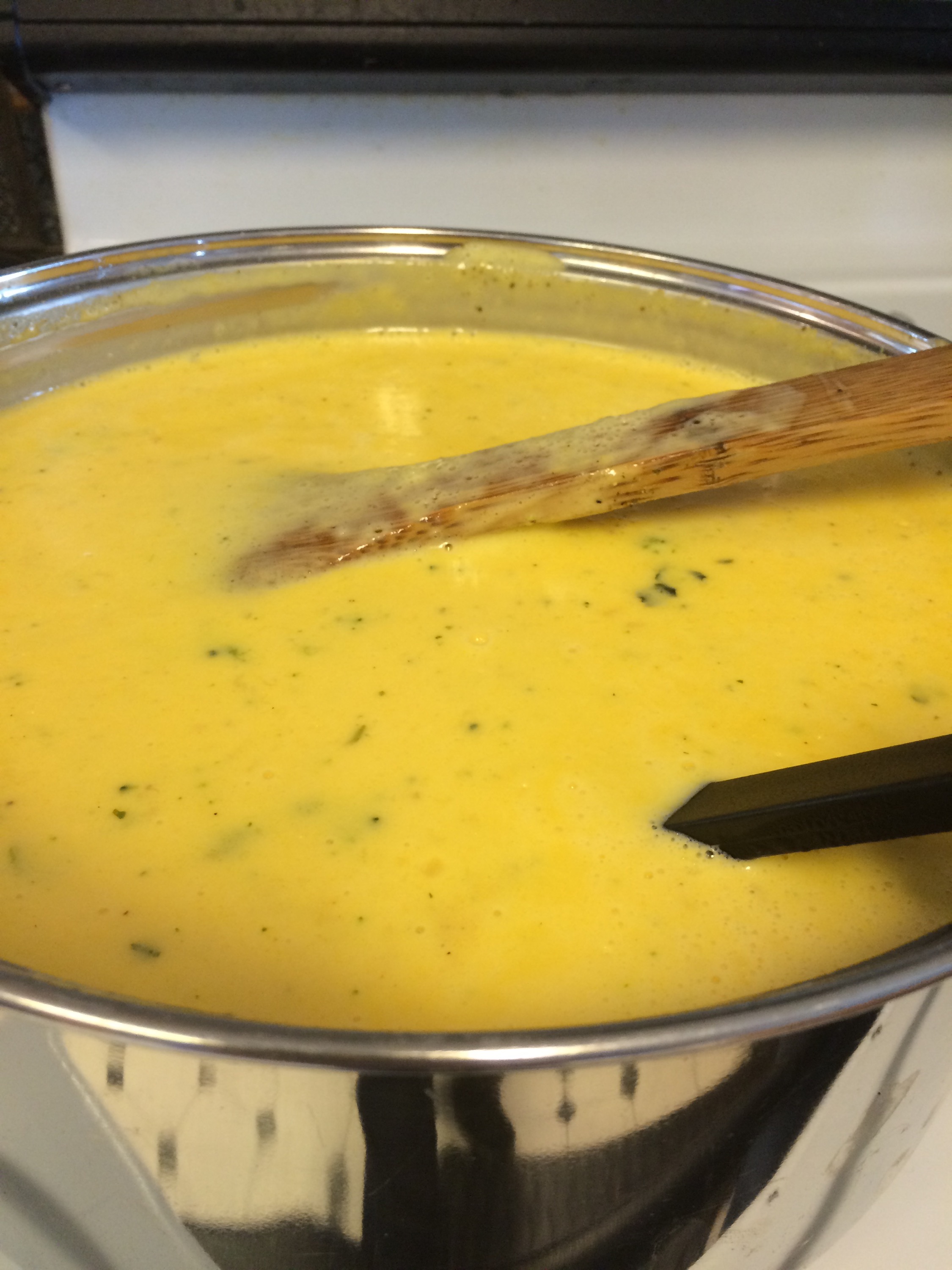 2. Reduce heat, and stir in the cubed cheese. Stir until completely melted. Paying careful attention that it is not sticking to the bottom of the pan.