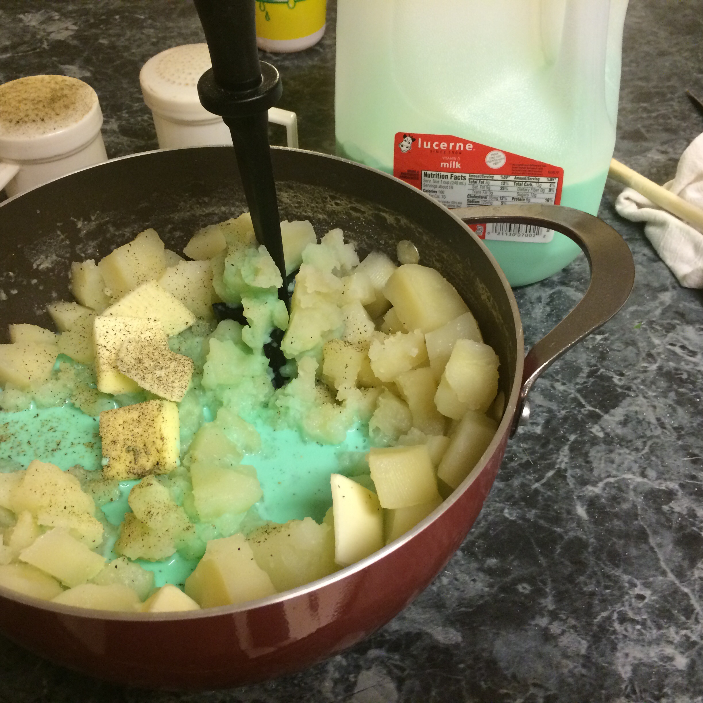 Yesterday I had this crazy idea that I knew would be so funny. I put lots of green dye in the milk. I know funny right!