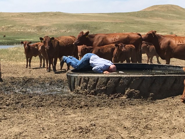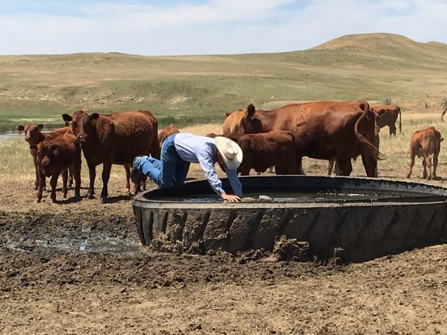 What a rancher does for his livestock. No he’s not drinking. He is blowing down the overflow to unplug it. I couldn’t resist a great photo opportunity. I’m sure he will thank me later, or sooner. Lol