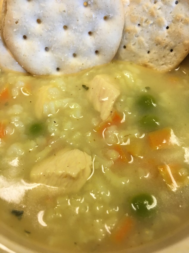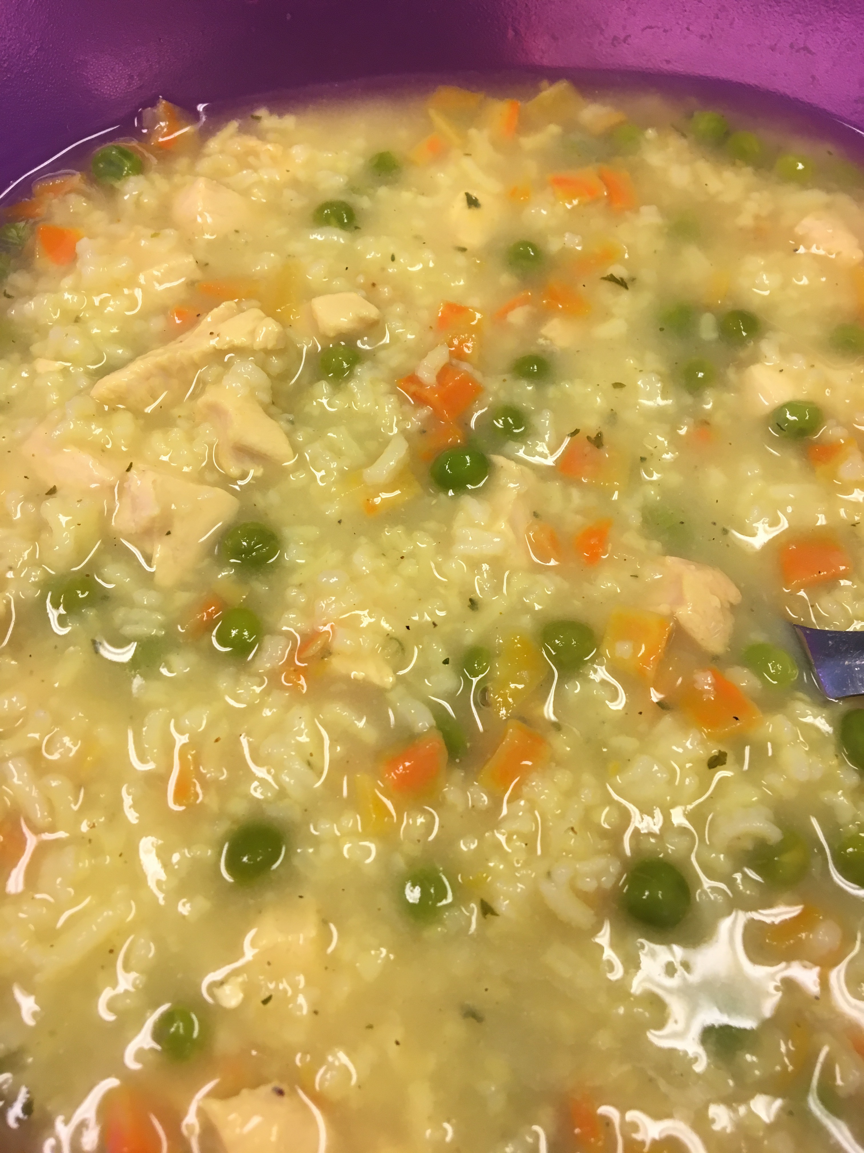 When I have chicken I usually make chicken noodle soup. However this time I mixed it up and made chicken and rice.