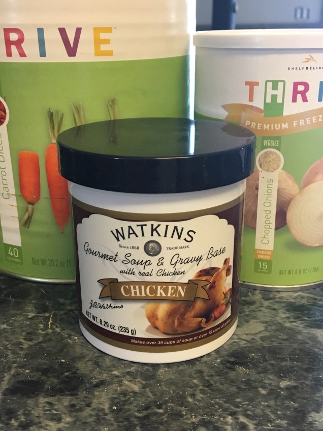 I then add my onions and carrots. These are freeze dried and will plump back up. I toss in whatever amount to my liking. Thrive is an awesome company! I use so many of their products. The veggies never go bad and I don’t have to worry I always have them on hand!