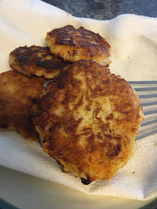 Potatoes cakes are truly fabulous. They are whipped up in no time at all and are great alone or with the next days dinner. Growing up we had these quite often.