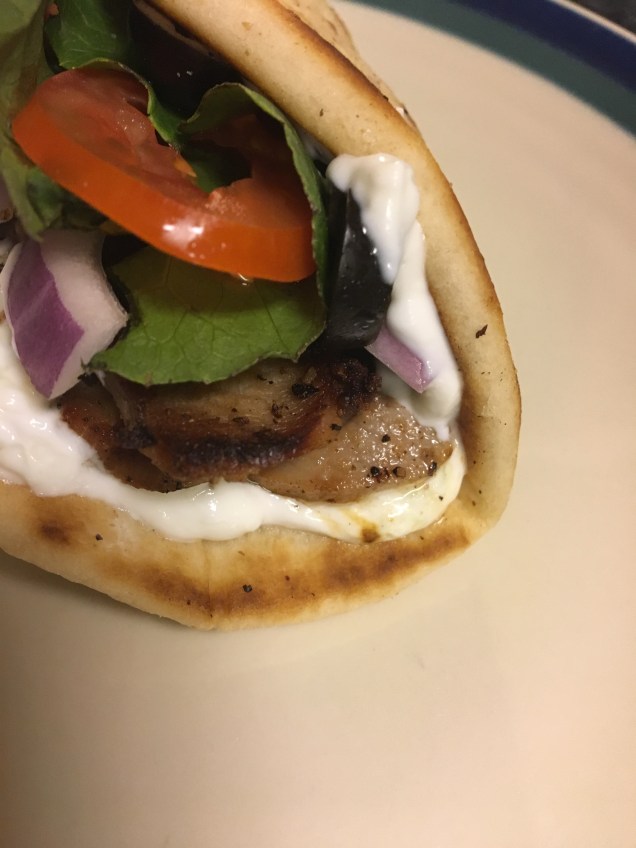 Today I grabbed the rest of the ingredients from the store and made our meal. They were everything I remembered. The taztziki sauce was simply delicious.
