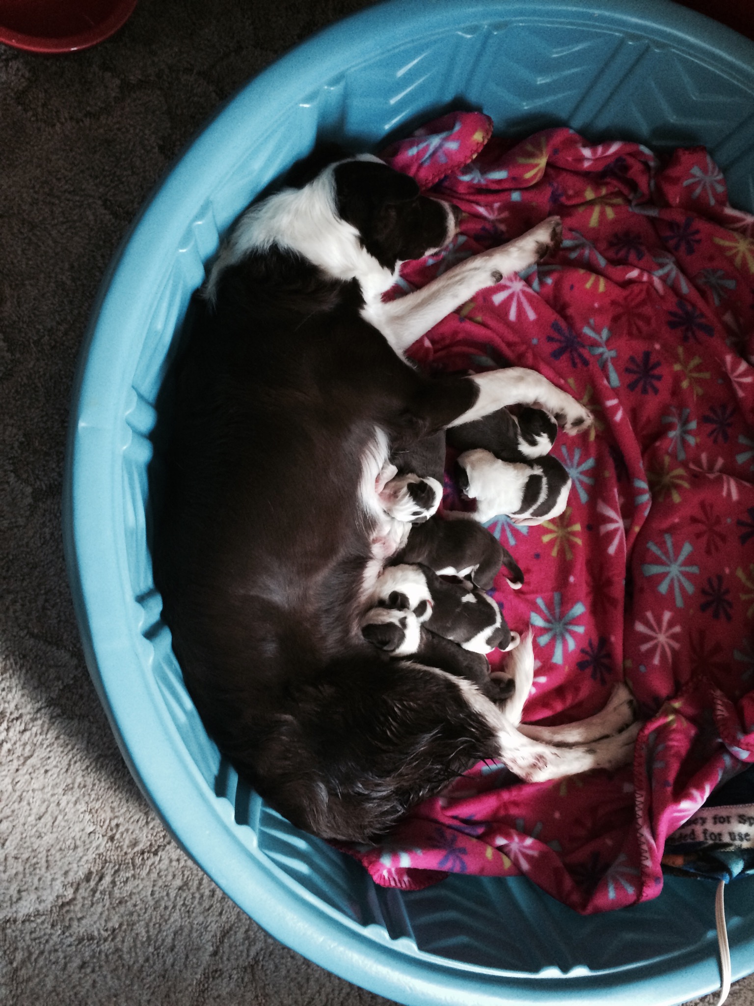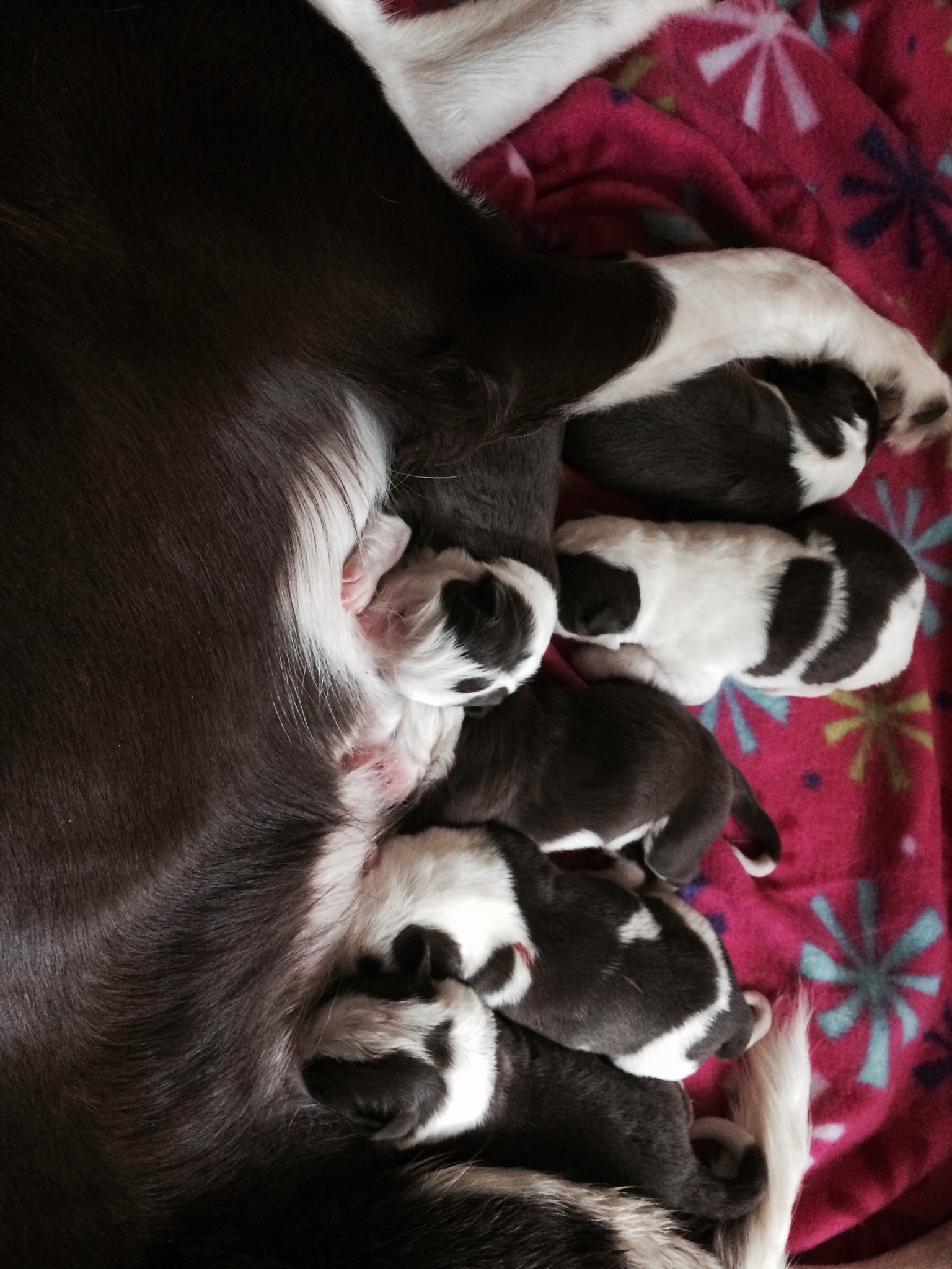One of the dogs from my first litter actually had pups 4 weeks ago and they are the cutest little black and white borders I have ever seen. Such color. Some are almost all white, and some are almost all black. If we weren’t overrun with dogs, I would be getting one of those little furry balls.