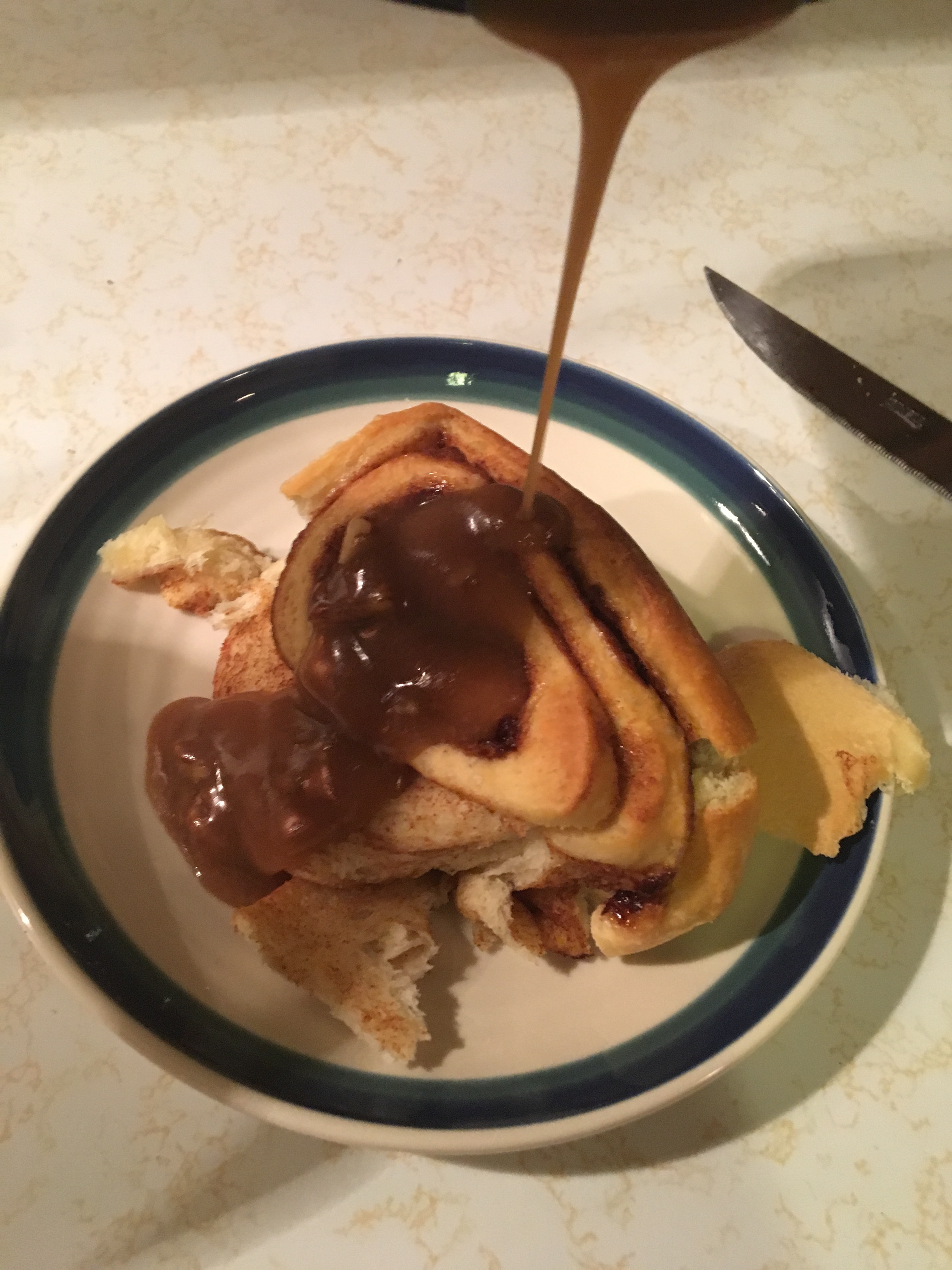 I made cinnamon rolls this morning. I added a caramel sauce to make them a little more gooey. I will post the recipe soon