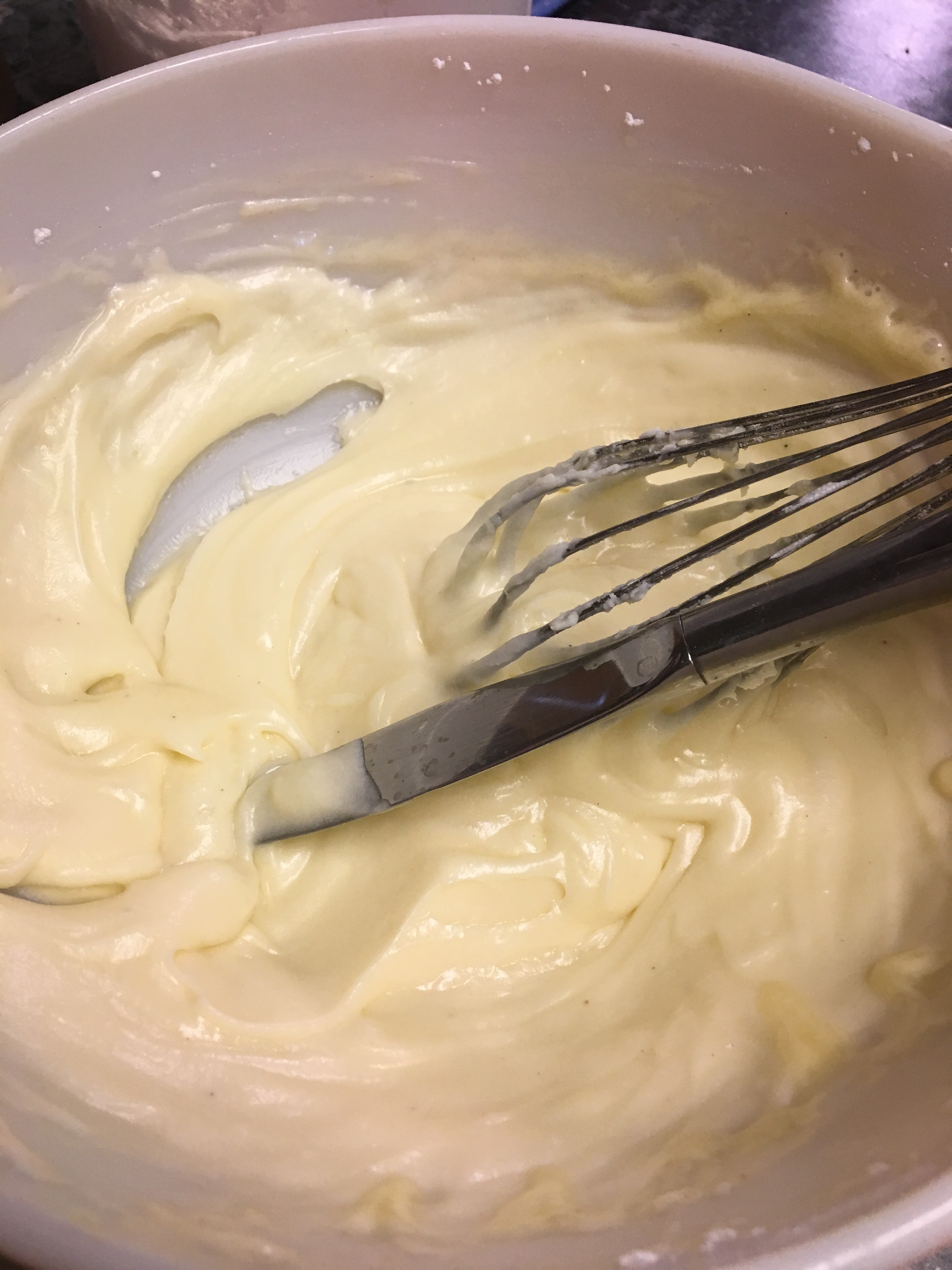 Mix the dry ingredients in a bowl. Add slowly mixing after each addition.